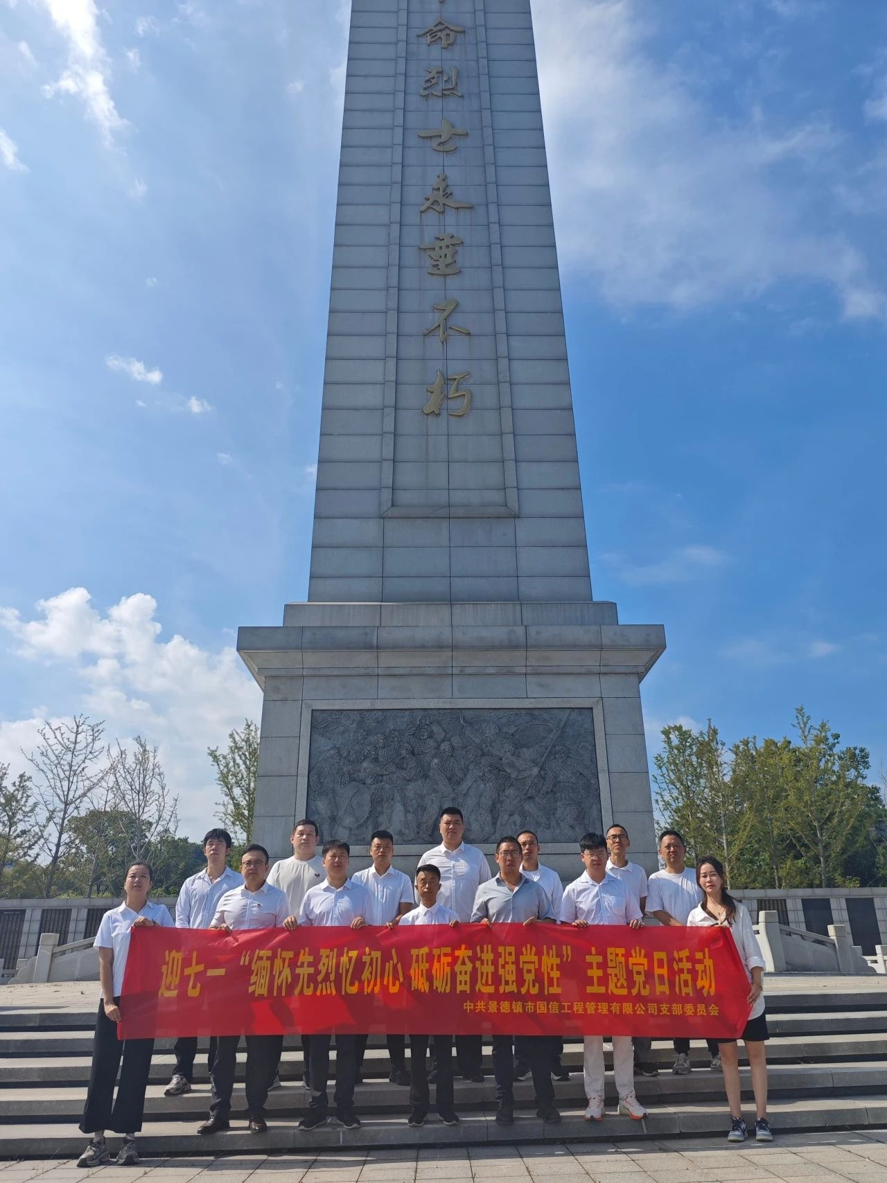 “青山埋忠骨,翠柏寄哀思”,為慶祝中國(guó)共產(chǎn)黨成立104周年,7月1日國(guó)控集團(tuán)黨委委員、總工程師、國(guó)信工程公司黨支部書(shū)記劉培靖帶領(lǐng)全體黨員、入黨積極分子及中層干部等14余人,赴景德鎮(zhèn)市烈士陵園開(kāi)展迎七一“緬懷先烈憶初心、 砥礪奮進(jìn)強(qiáng)黨性”主題黨日活動(dòng)。